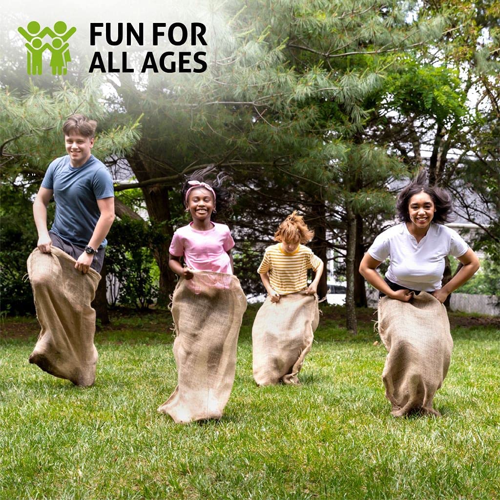 There are a total of 6 burlap sack bags in one order. The sacks measure 23”x40” and are suitable for adults and children.
